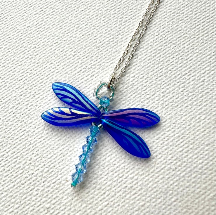 The dragonfly is hand stitched with Swarovski crystals and stunning Czechoslovakian glass beads.