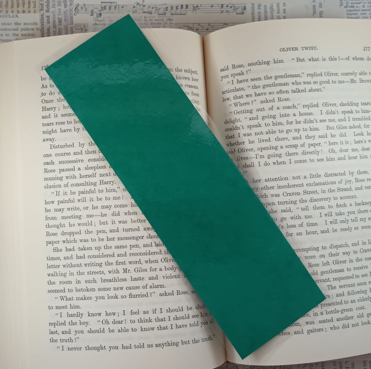 The bookmark measures approximately 21cm x 6.5cm (8.25 inches x 2.75 inches)