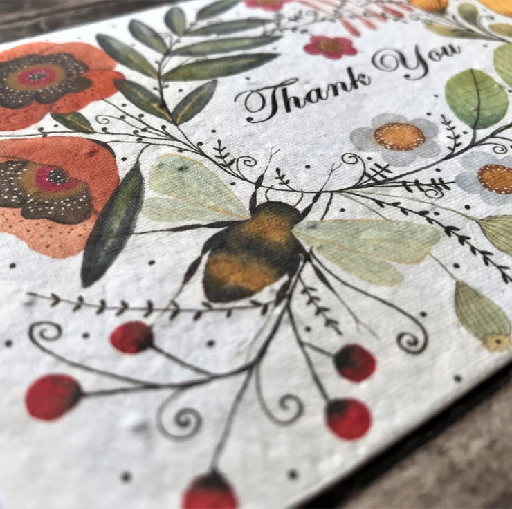 It is a thick recycled paper (about 150 gsm) embedded with various flower seeds. Seeds include: Sweet Alyssum, Poppy, Baby s Breath & Rudbeckia. These are non-invasive species that are commonly found in garden shops and can be grown in pots and left outside for bees and other pollinators.
