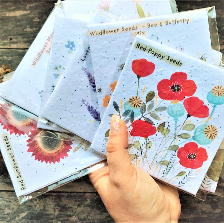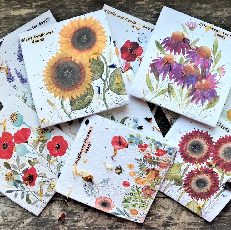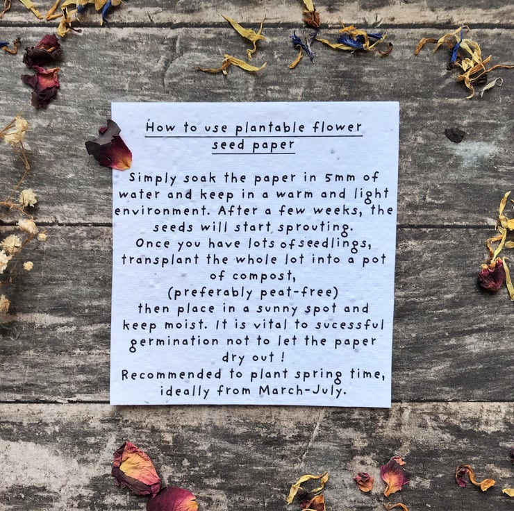 All seed packets are completely handmade, and have been designed, printed, cut, scored and folded by me, with much love :) for any special occasions like Birthdays, Mother's Day, Valentine's Day or Wedding favours. They would make a wonderful unique environmentally friendly gift. Each envelope is covered with plantable flower seed paper, ready to plant, as easy as that, which will grow into beautiful field flowers and brighten up every garden, balcony or living room!! (Instructions to plant the paper are also printed, which you will be able to find inside of the pack). Instruction to plant the seeds is on the back of the seed pocket.