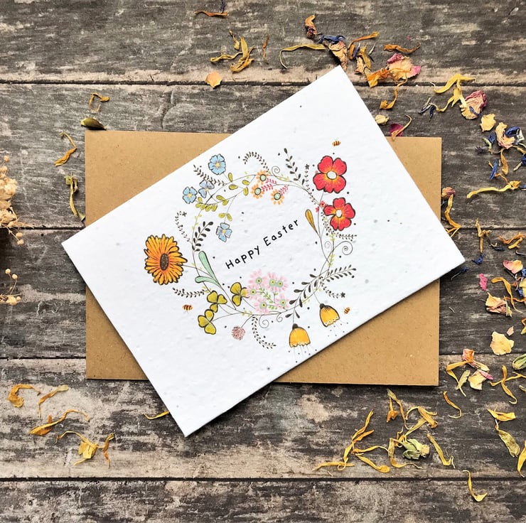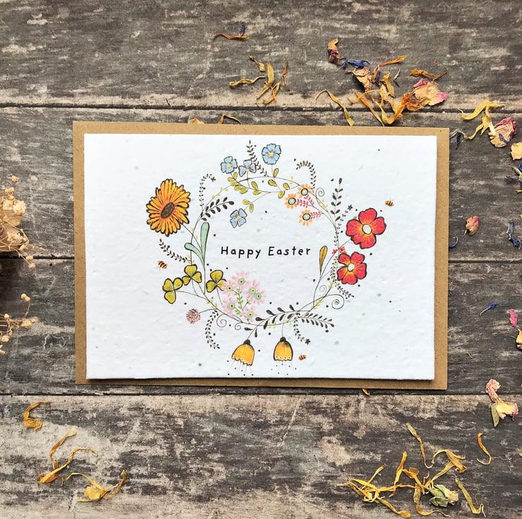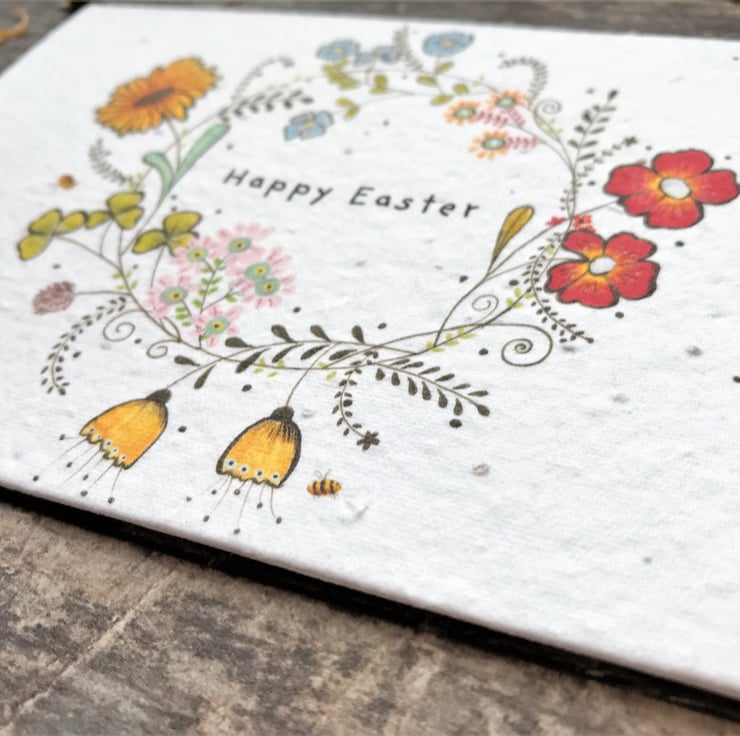It is a thick recycled paper (about 150 gsm) embedded with various flower seeds. Seeds include: Sweet Alyssum, Poppy, Baby s Breath & Rudbeckia. These are non-invasive species that are commonly found in garden shops and can be grown in pots and left outside for bees and other pollinators.