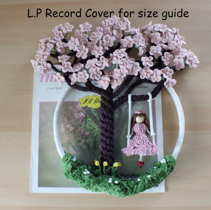 the cherry blossom tree is attached to a 30cm bamboo ring which has been wrapped in a natural cotton rope.
