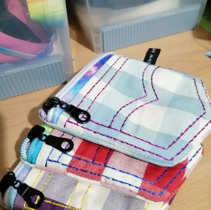 I had this lovely check fabric in lots of different colours and was inspired to make these purse's to use the lovely fabric .