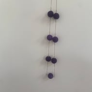 A silver-coloured choker adorned with handmade felt balls, crafted through wet felting using green and blue merino wool.
