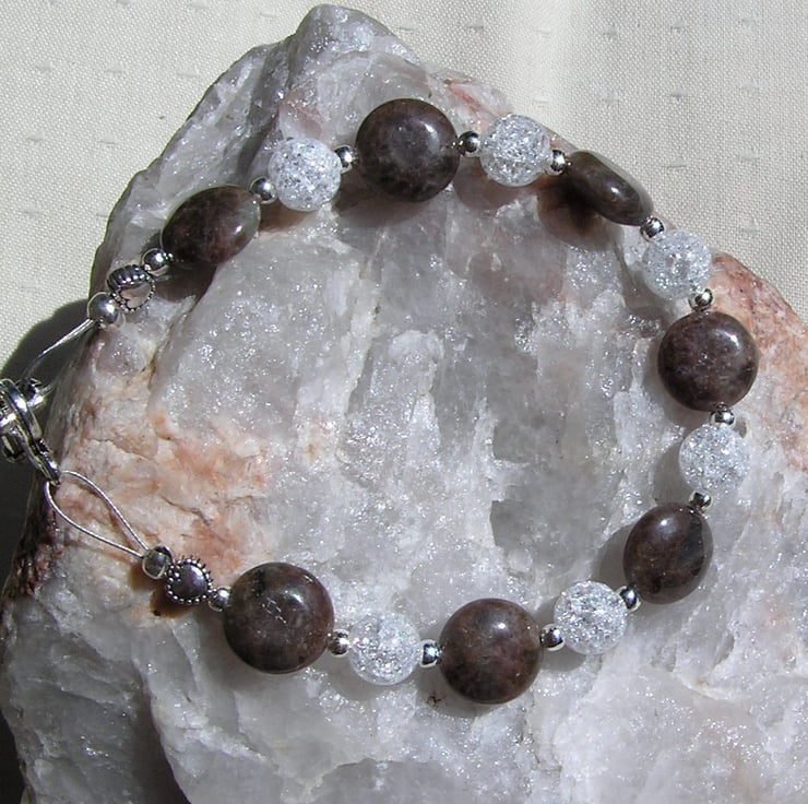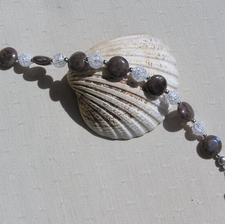 Brown Labradorite & Crackled Clear Quartz Gemstone Crystal Bracelet