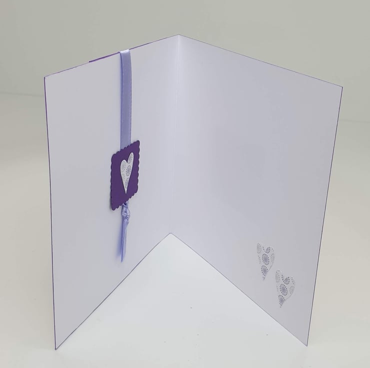 The inside of this pretty handmade card has been left blank for your own message but has been decorated with a few decorative hearts using the same patterned paper as the front.