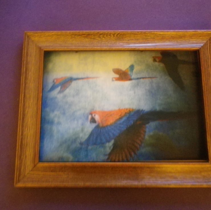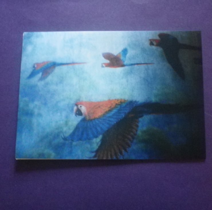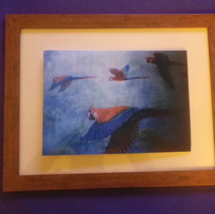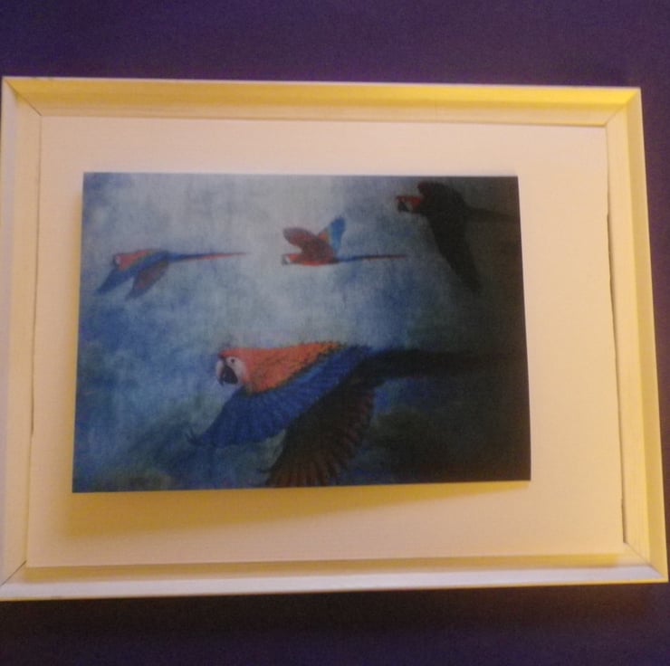 Parrots in Flight, unframed A4,mounted,free hook&easel , free shipping 4005...
