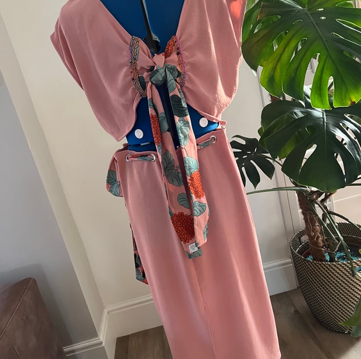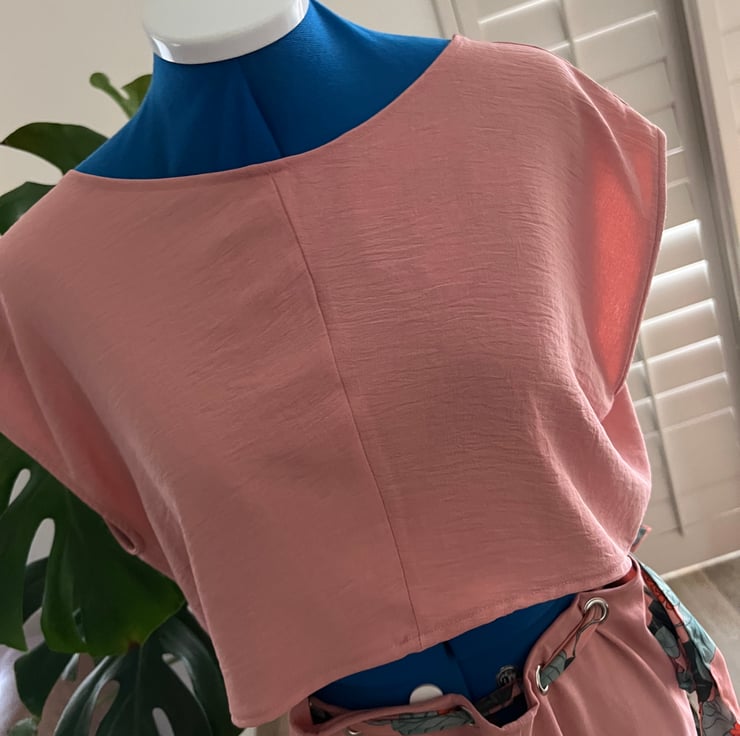 This beautiful top is created in pale pink polyester and finished with a floral tie fastening to the back with beading. The perfect addition to your summer wardrobe or pool wear. Pair with jean shorts or a maxi skirt for summer vibes.