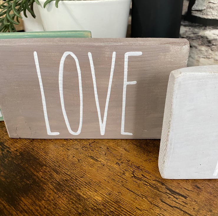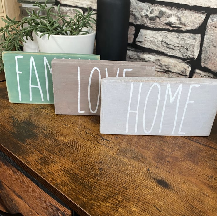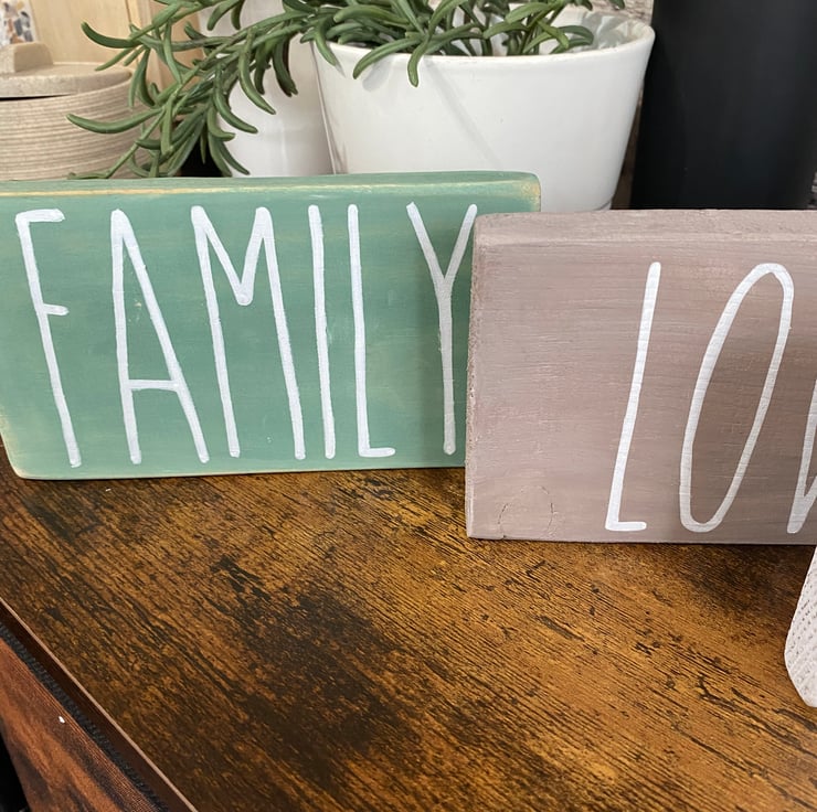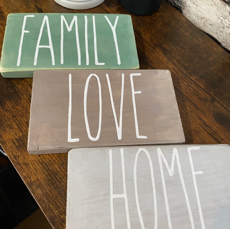 Made using acrylic paints with the wording in a Rae Dunn inspired font.