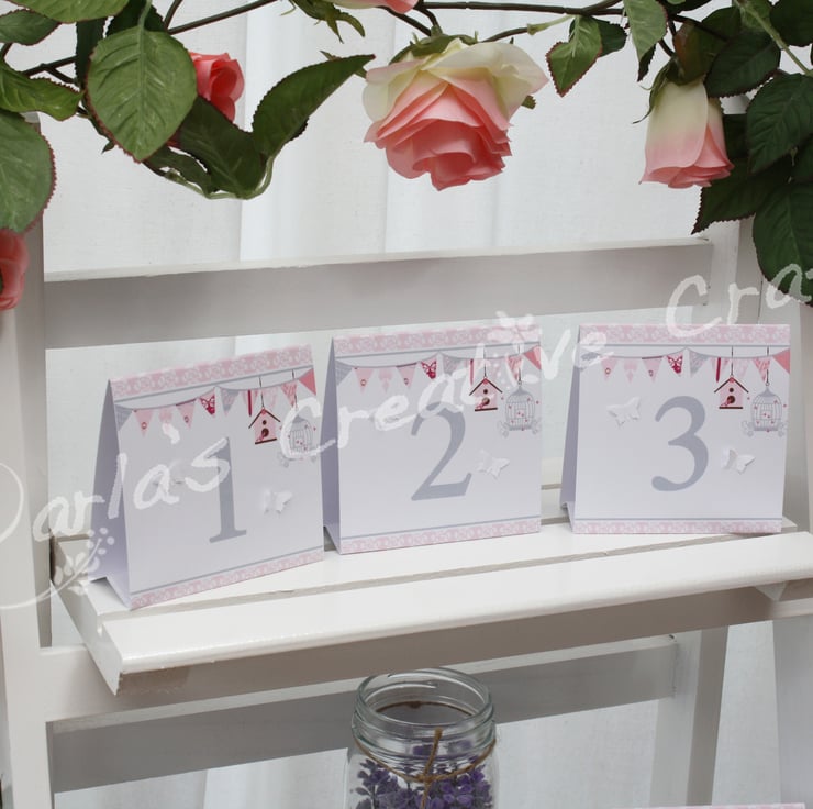 The table numbers have a unique vintage birdcage and bunting theme which I have designed and illustrated myself. They can be used for any celebration eg: weddings, birthdays or anniversaries. They make great decoration's for any table.