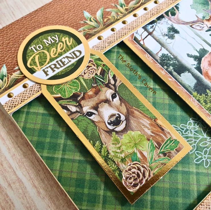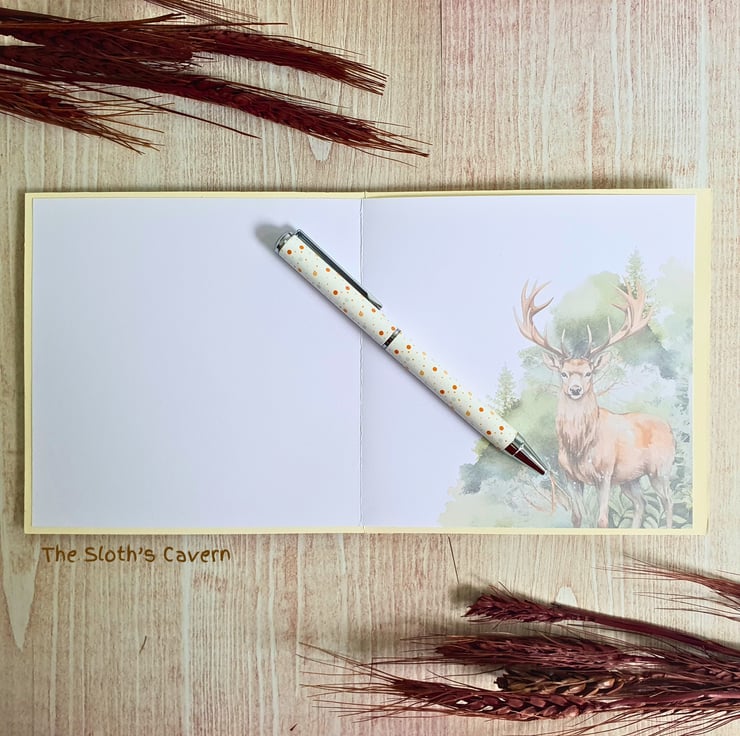 A cute handmade greeting card featuring a deer, perfect to be given to a friend for their birthday, as a thank you card, congratulations, or just because!