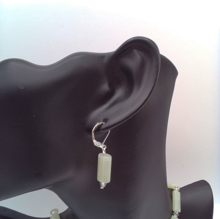 Green Jade and Crystal Necklace with Silver Pendant and Earrings, Gift for Her