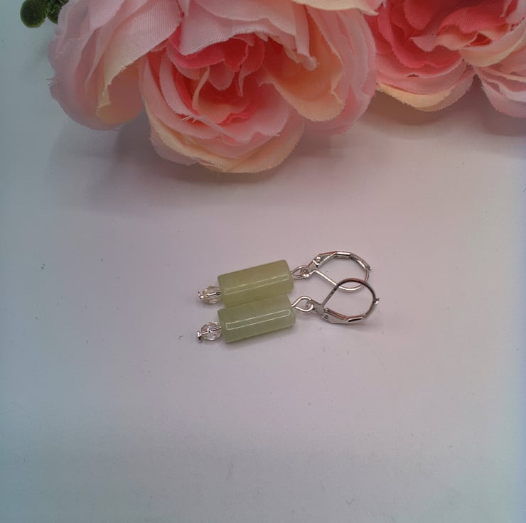 Green Jade and Crystal Necklace with Silver Pendant and Earrings, Gift for Her, Jade Jewellery, Necklace, Earrings, Birthday Gift, Anniversary Gift, Jade Necklace, Jade Earrings, Christmas Gift, Silver Pendant