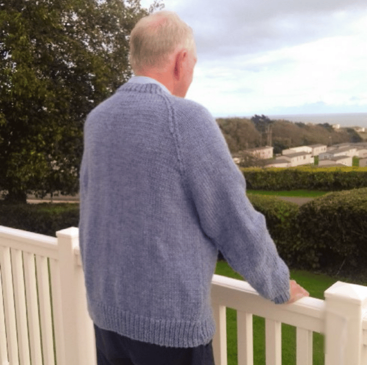 A sweater blue, beyond compare.