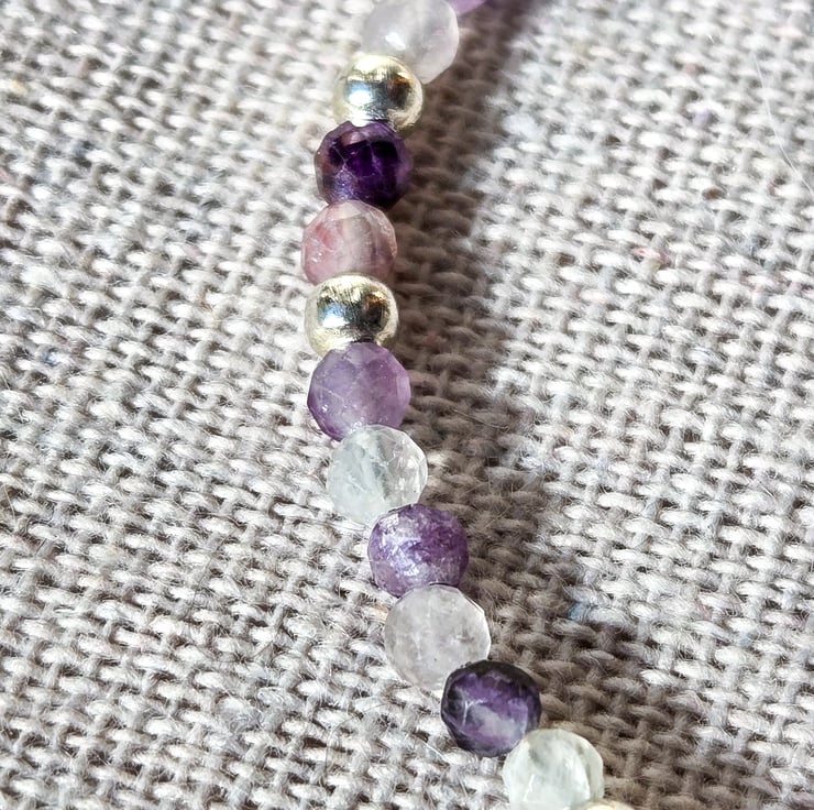 Welcome to this listing for my lovely, handmade Rainbow Fluorite gemstone beaded bracelet!