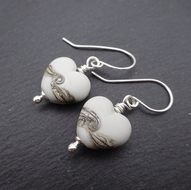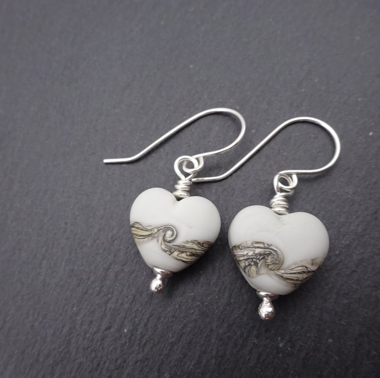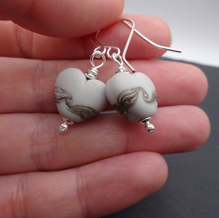 The lampwork beads have been handmade by me using grey and ivory glass, they have been shaped into hearts and tumbled to give a smooth finish.