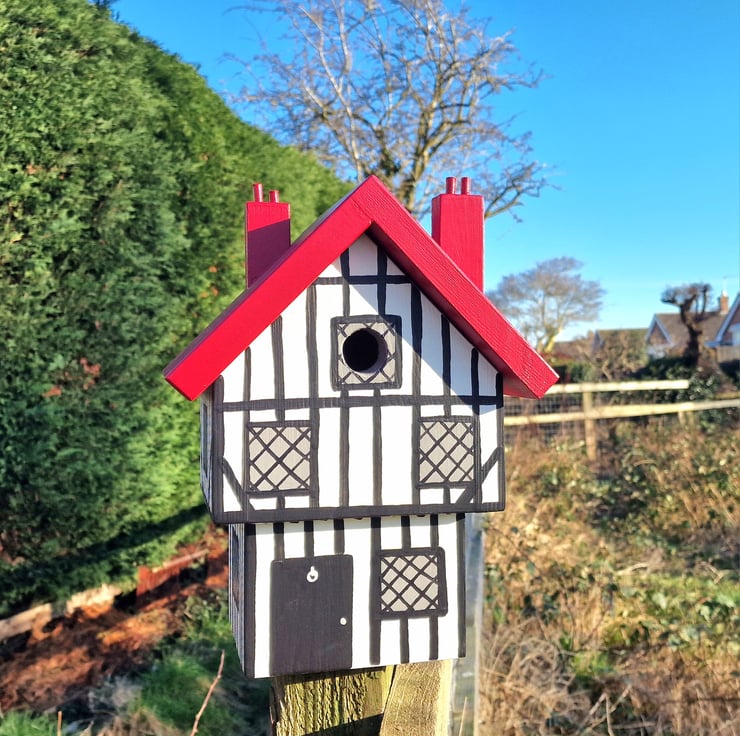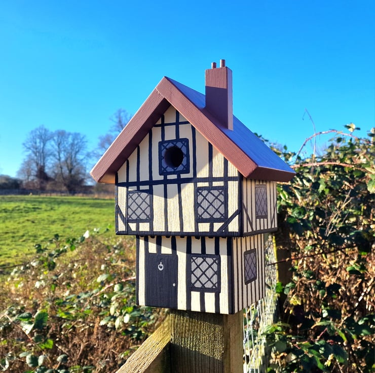 This handmade and personalised classic Tudor house bird box will be a delight in the garden and will enhance any outside space. Perfect for the period home!