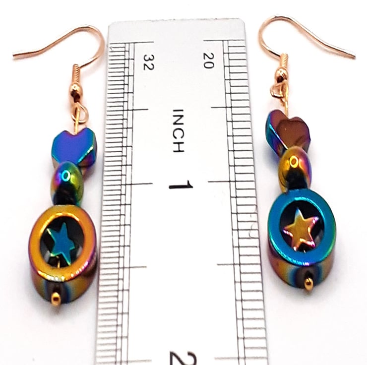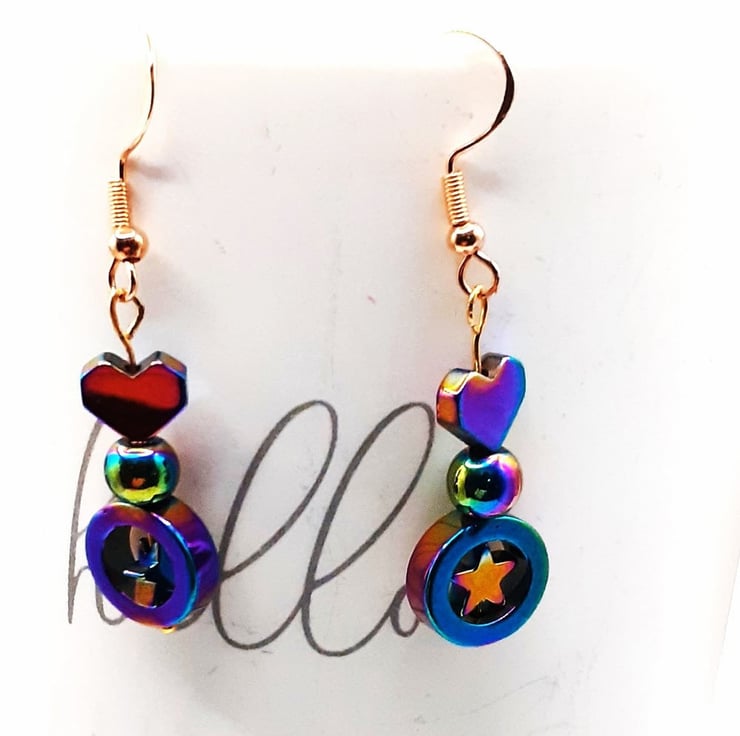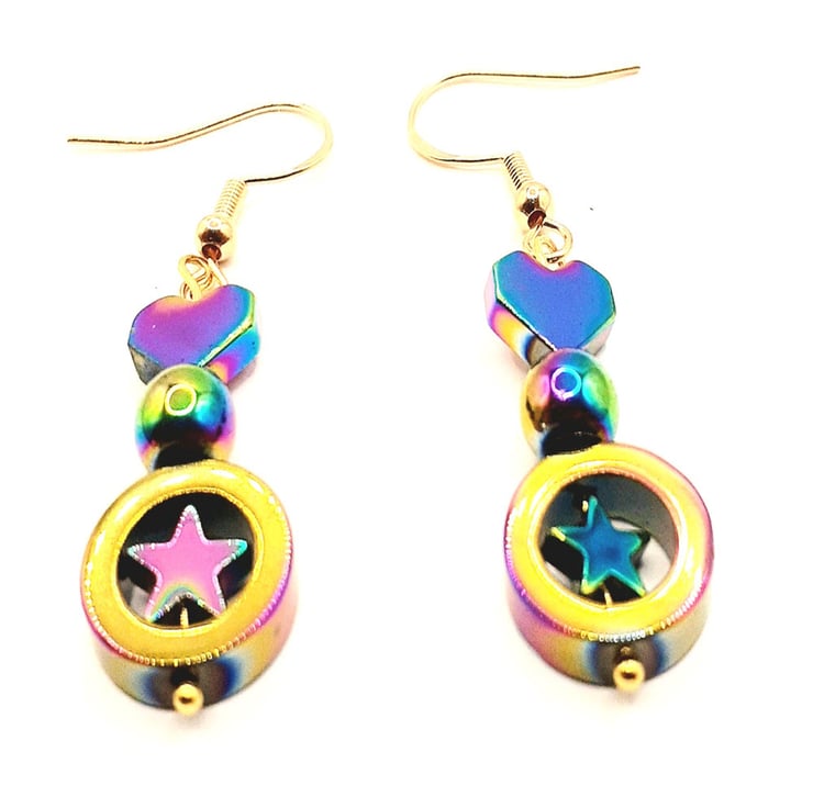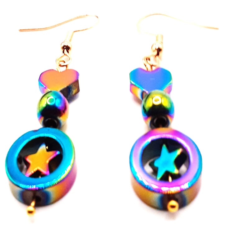 Elevate Your Style with these Handcrafted Earrings Featuring Hematite Gems with Aurora Borealis Accents.