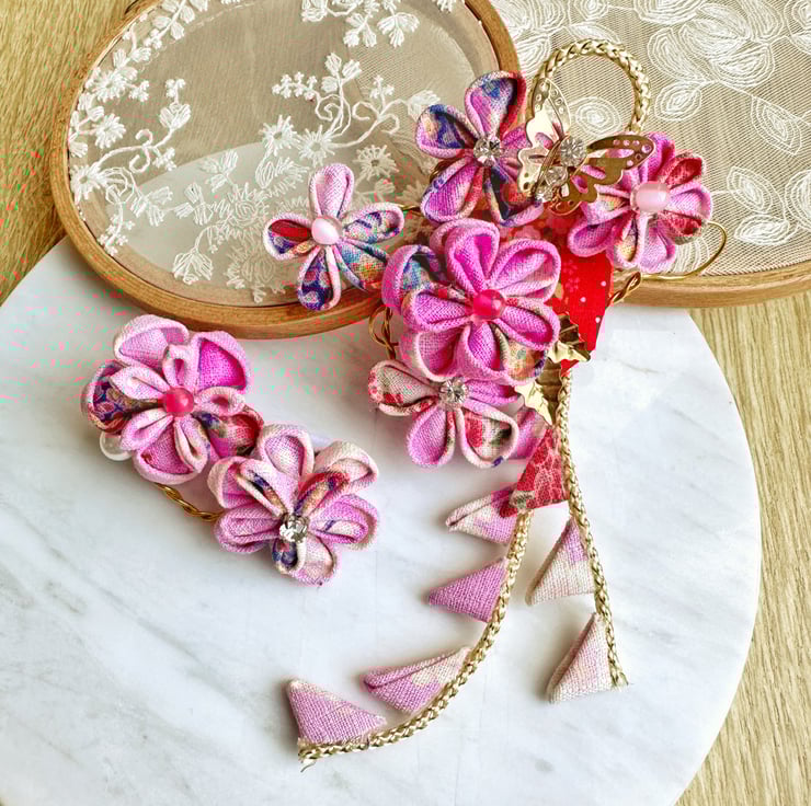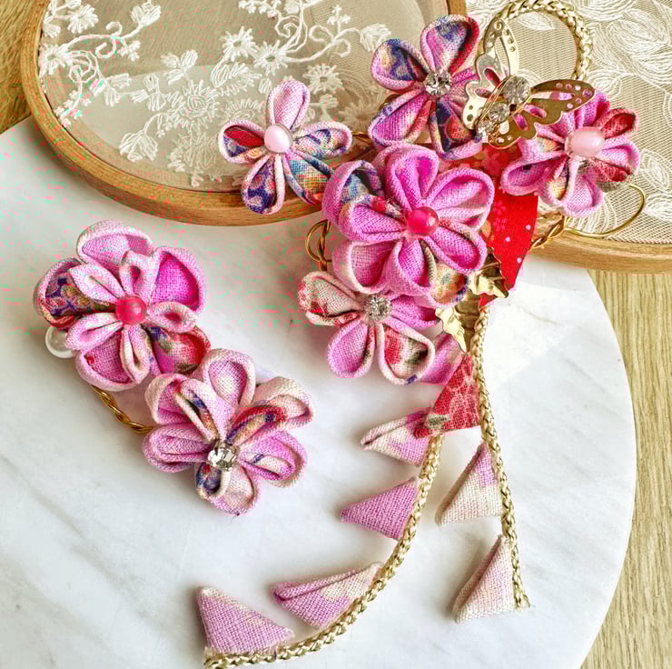 - Created with Japan fabric, beads, rhinestone, metal and soft rope.