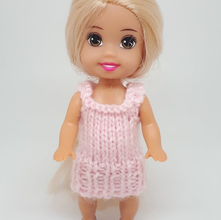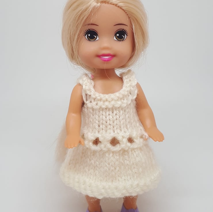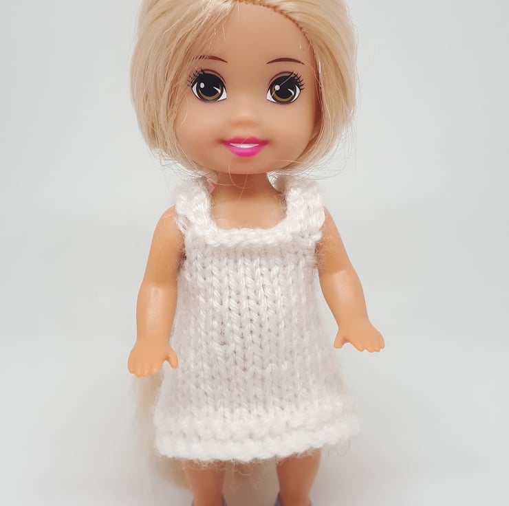 This hand knit PATTERN is for dresses for a Doll. To fit:11 cm or 4.5-inch Doll. Dresses are knitted in 4 ply yarn using a pair of 2 mm knitting needles and are knit flat and seamed.