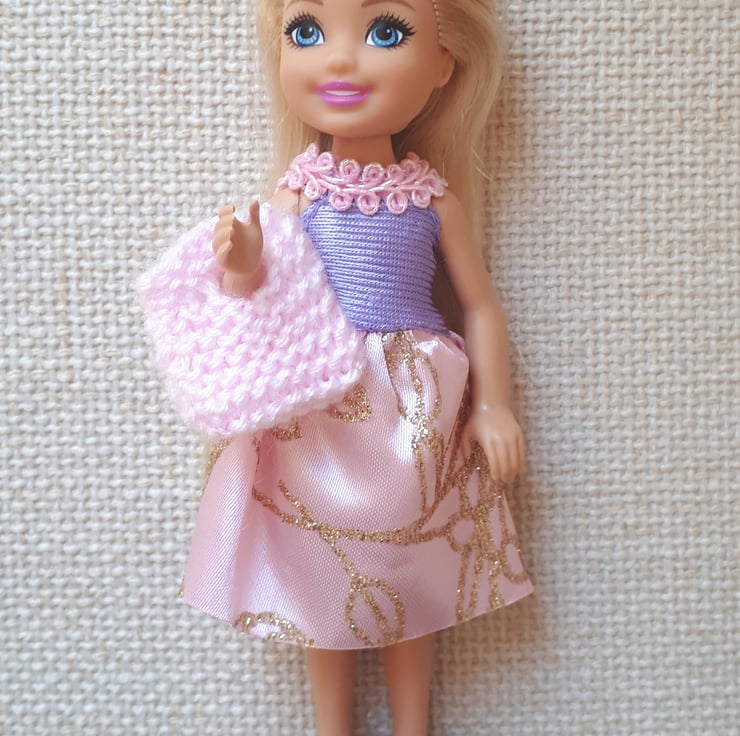 This hand knit PATTERN is for an outfit for a Fashion Doll, including a skirt, a top, a hat, and a bag. To fit 13.5 cm or 5.3-inch Fashion Doll. Knitted in 4 ply yarn using 2 mm knitting needles. Outfit is knit flat and seamed.