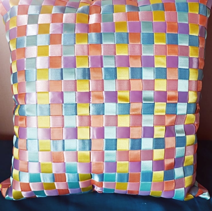 Pastel color ribbons woven together to make a colorful cushion Cover to brighten up any room with back zip