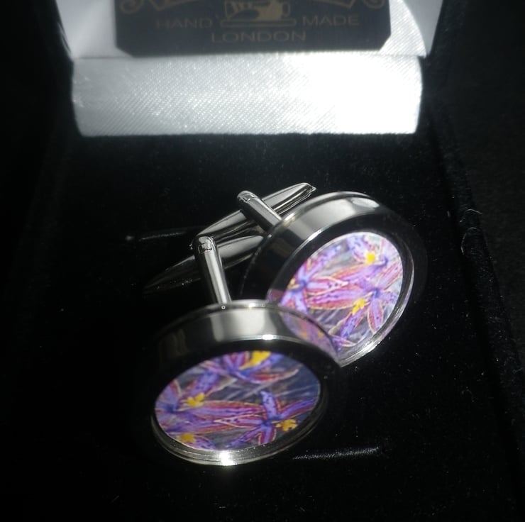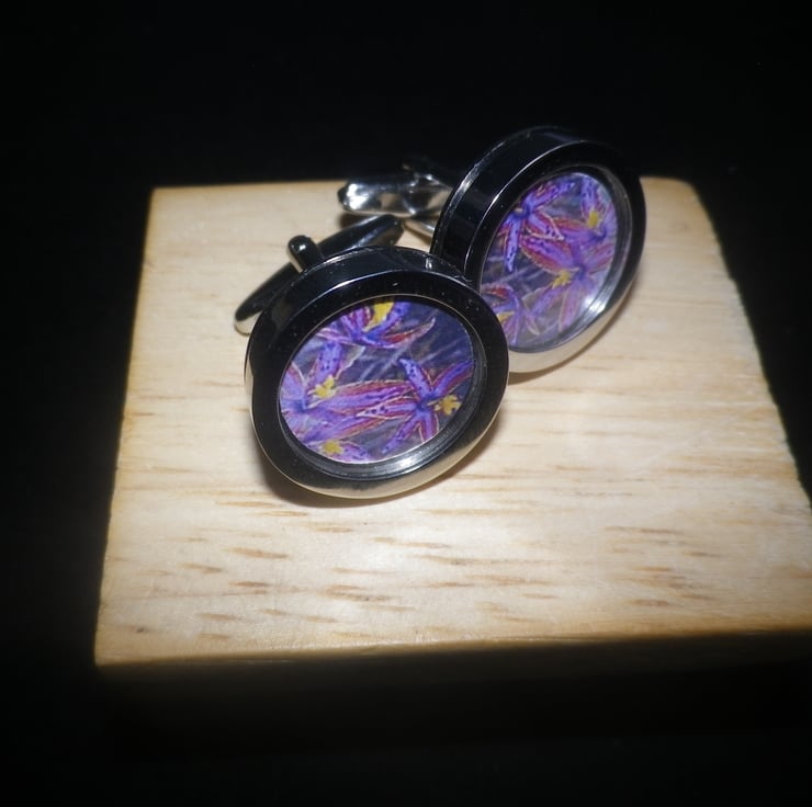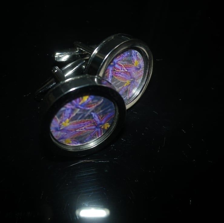 Purple Orchid cufflinks, free shipping, gift wrapped, rich colours Ref :1234