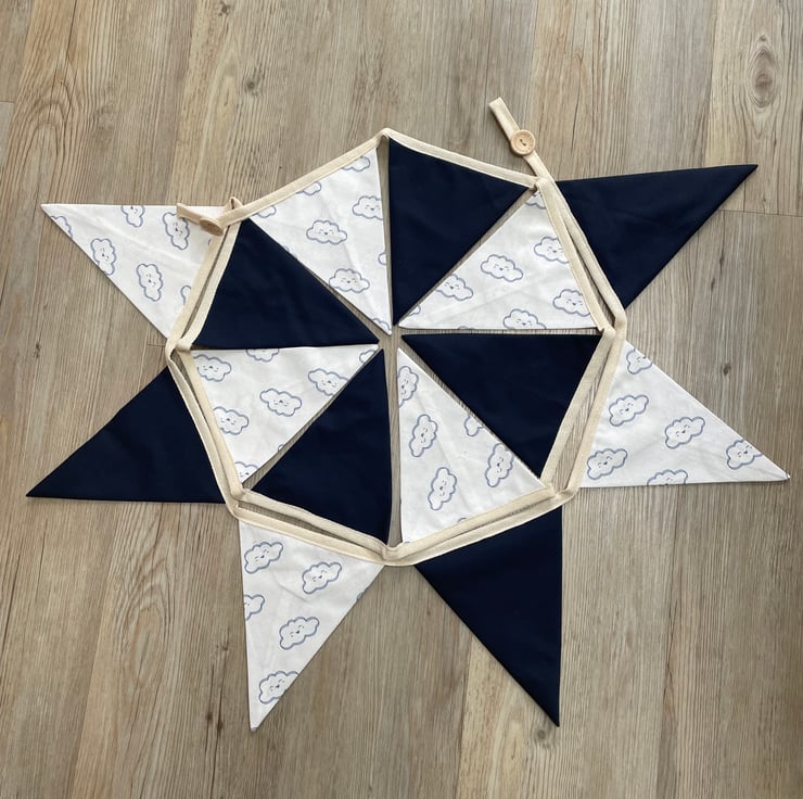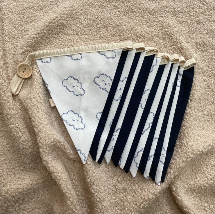 As soon as I seen this beautiful cloud fabric I knew it would make the cutest bunting, ideal for a baby nursery or playroom.