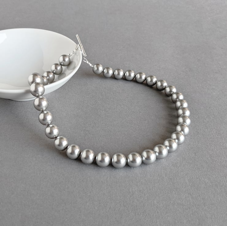 Chunky Silver Pearl Jewellery Set - Single Strand Light Grey Wedding Jewellery