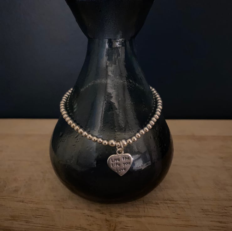 This is a hand threaded sterling silver bracelet with a sterling silver Heart charm.