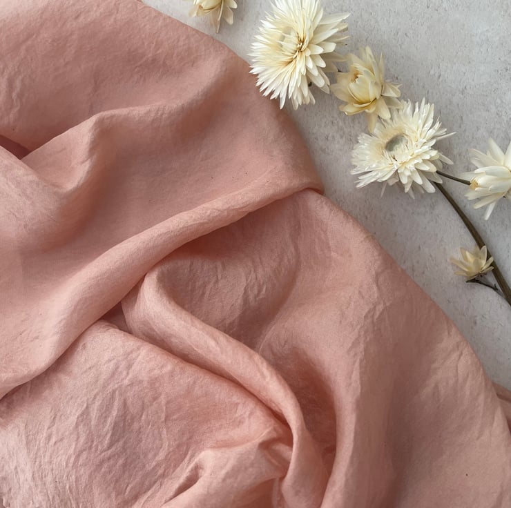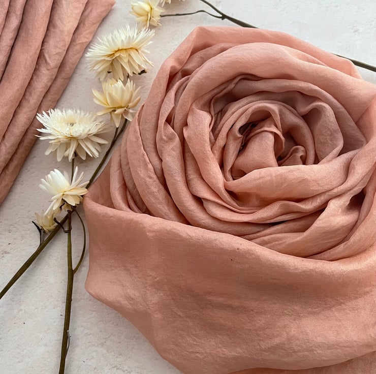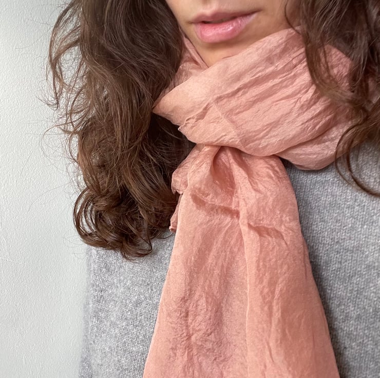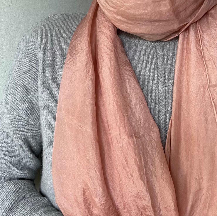 This blush pink scarf in naturally dyed at our Dorset Studio using an extract from avocado skins to obtain the incredible soft pink shades.