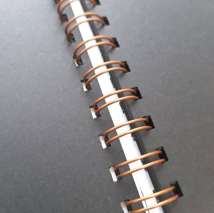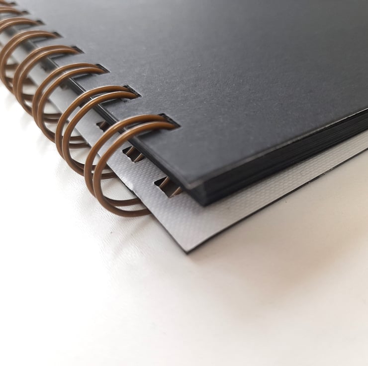 A hand made landscape blank, junk journal / notebook containing smooth black 120gsm paper pages, all neatly bound with a bronze wire and with black card card covers. This would be fabulous for creative junk journaling, for you to personalise and embellish. Also would be great for pastel drawings, metallic pens, bleach work, pencils and for scrapbook / memory keeping work.