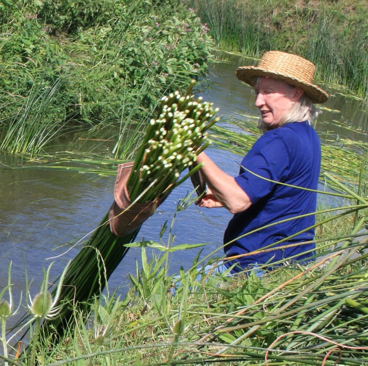Rush weaving is a heritage craft basketry skill, utilising a locally and naturally sustainably growing material, often similar in its uses to straw but with its own ancient and rich history - rush-matting and chair-seating to name only two. Having virtually disappeared in this country, rush weaving is reviving, fitting in perfectly with green living practices as a renewable and sustainable product which will last for many years and has traditionally been handed down from generation to generation.