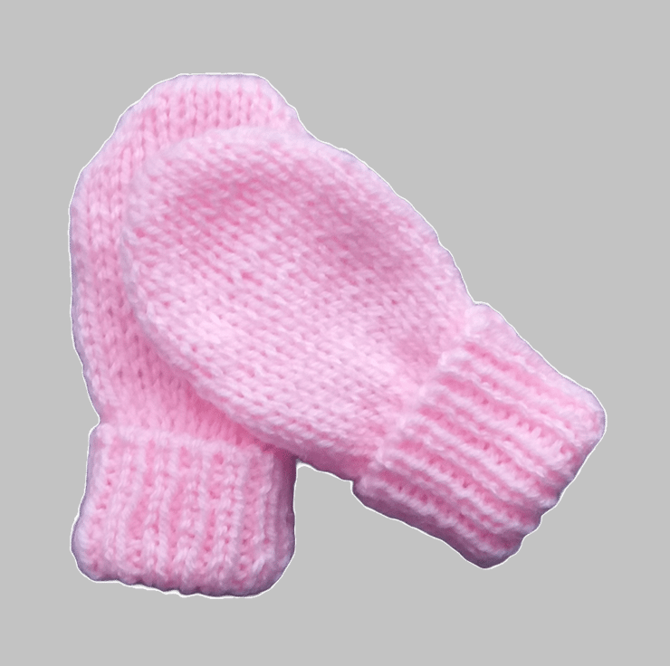 This hand knit PATTERN is for a pair of mittens for Baby with four variations. To fit baby: premature (newborn: 3 months). Width across palm: 4 (5: 6) cm: 1.5 (2: 2.5) inches. The mittens are knitted in double knitting yarn using 3.25 mm and 4 mm knitting needles and are knit flat on a pair of single pointed needles or in the round on double pointed needles.