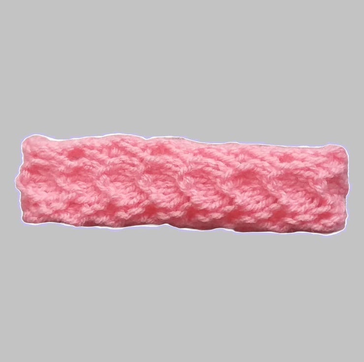 This hand knit PATTERN is for a selection of headbands for baby. To fit: premature to newborn baby. Width round head: 18 (23: 28: 33) cm; 7 (9: 11: 13) inches. Headbands are knitted in double knitting yarn using 4 mm knitting needles and are knit flat and seamed.