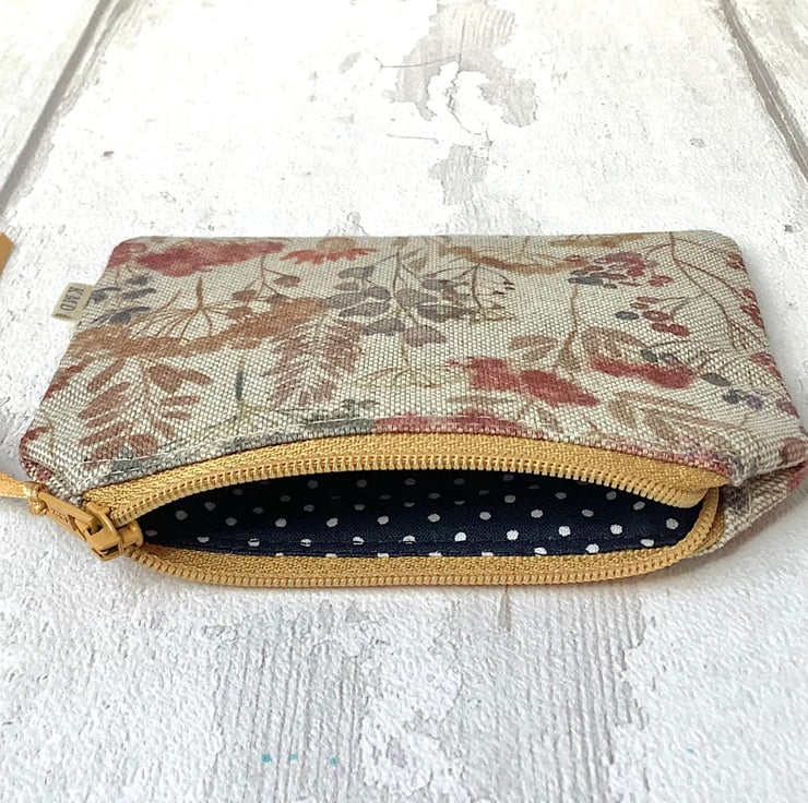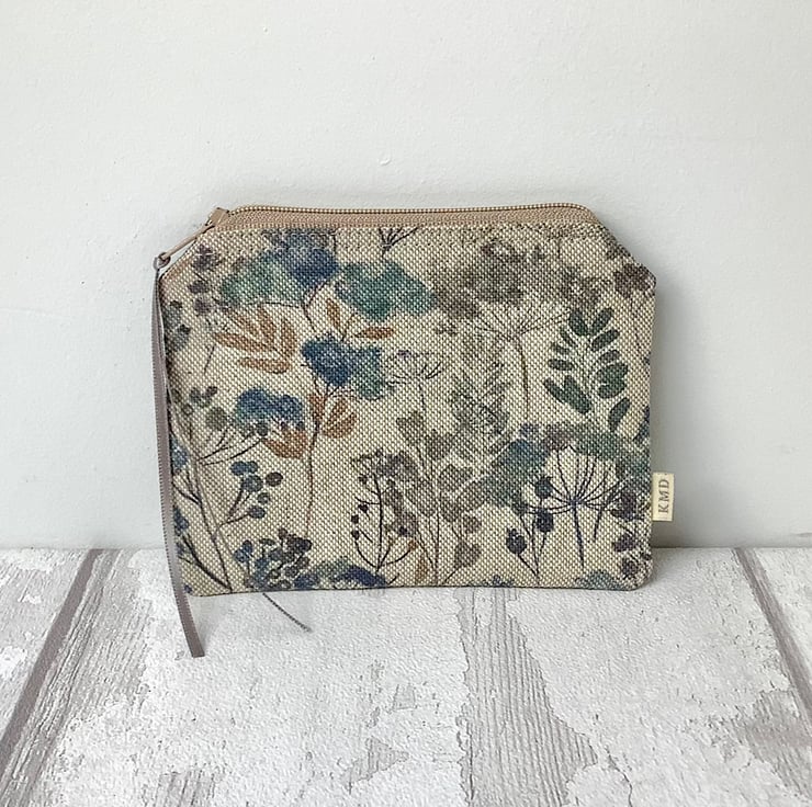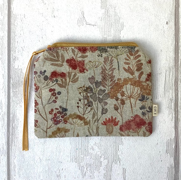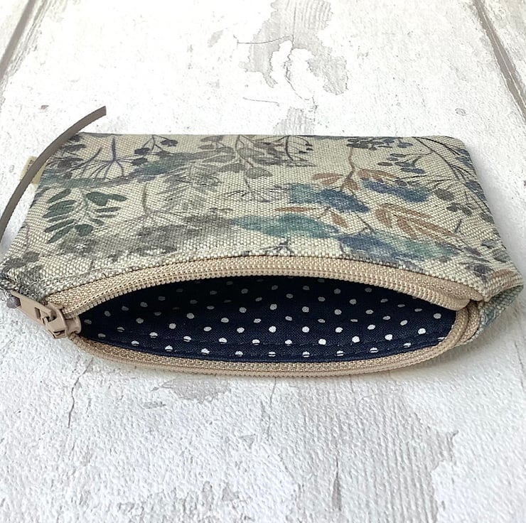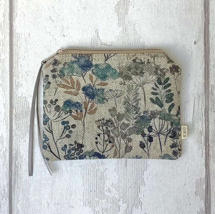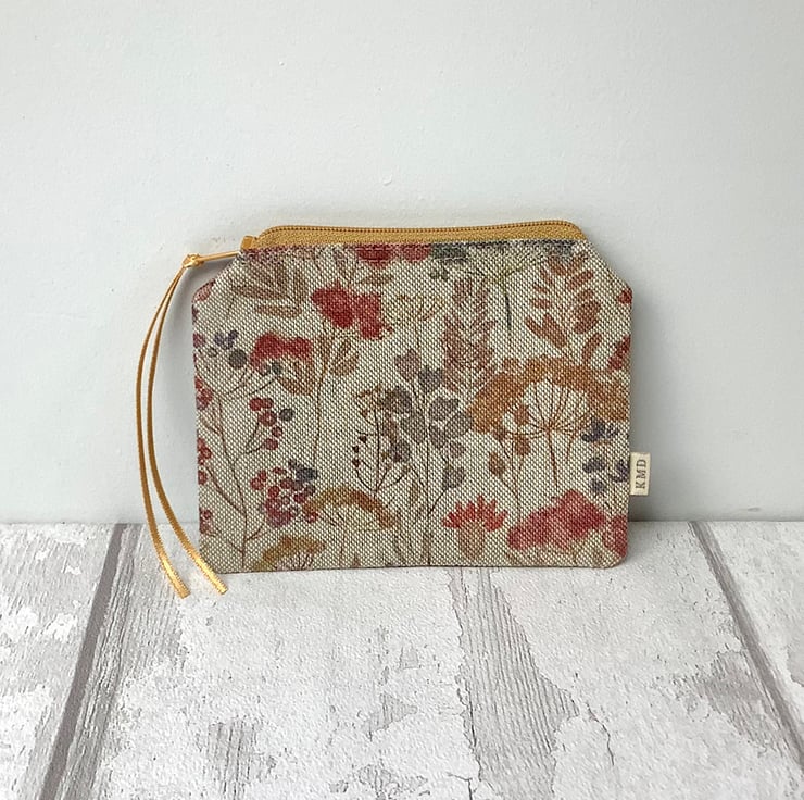 Pretty floral coin purse in a choice of blue or re floral print fabric. Zip opening with a navy spot lining. Matching tote b gas with this item. 12.5cm by 9.5cm.