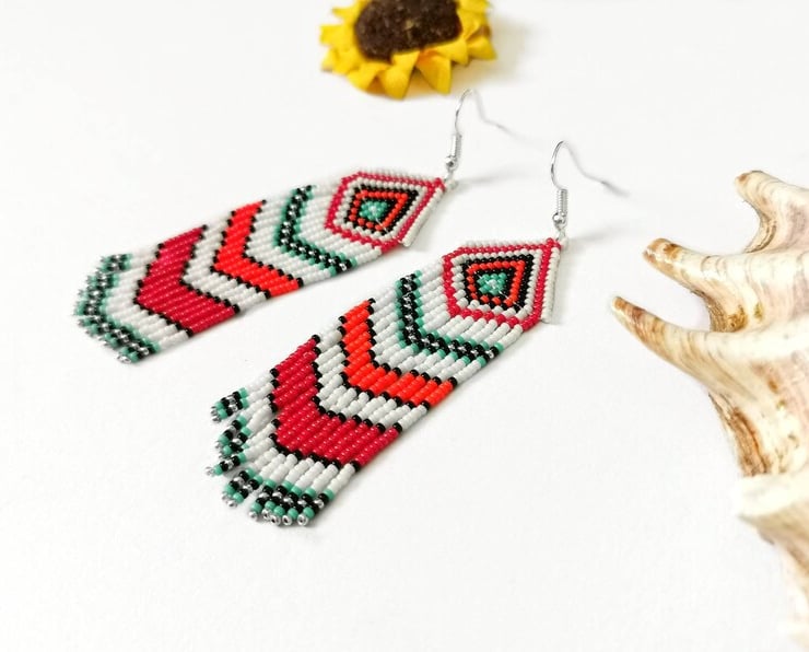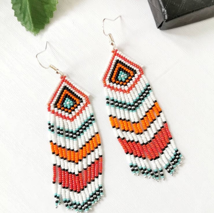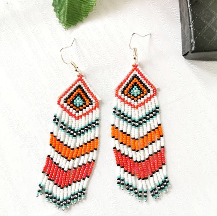 A new addition to our range of beaded, boho style jewelry, these long statement earrings are lightweight and extremely comfortable.