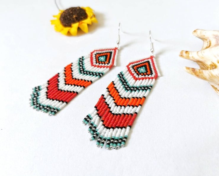 A new addition to our range of beaded, boho style jewelry, these long statement earrings are lightweight and extremely comfortable.