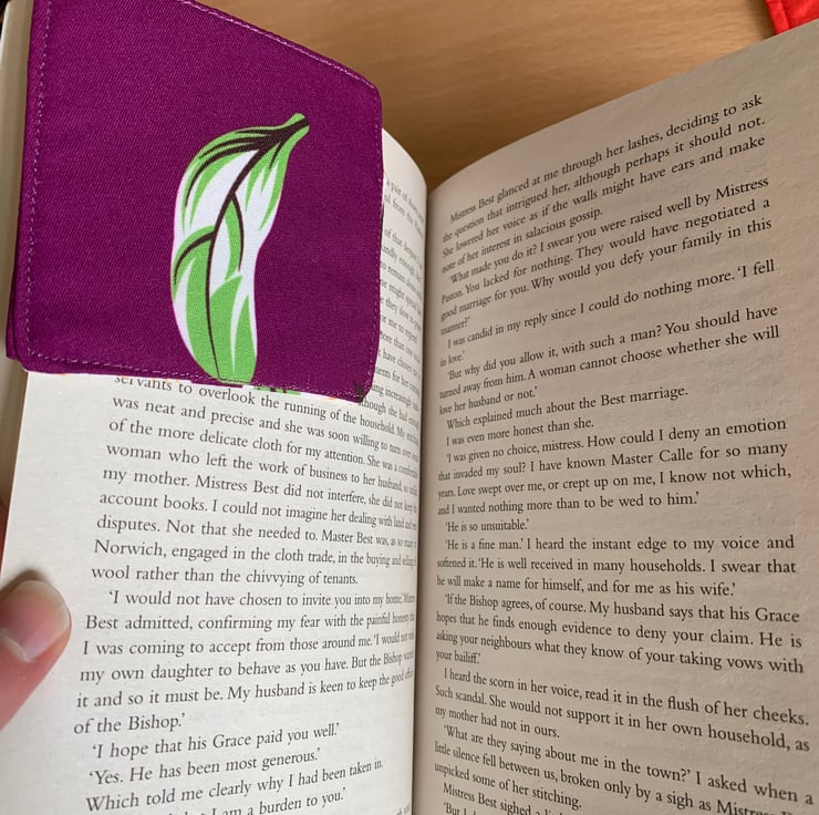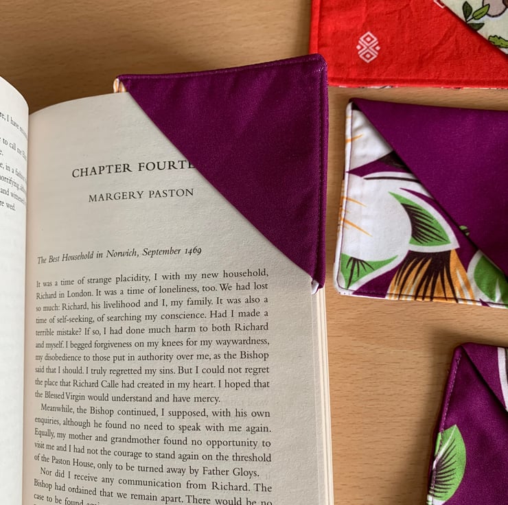Beautiful bookmarks that keep your place, fitting comfortably over the corner of your page and protecting your pages. As these are made with scraps from other fabrics, no two are exactly the same. Contact me if you'd like a specific fabric or colour and this can be discussed.