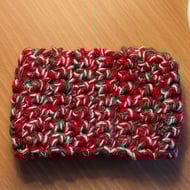 Crochet Cup Cosy in sage green/grey soft chunky yarn.