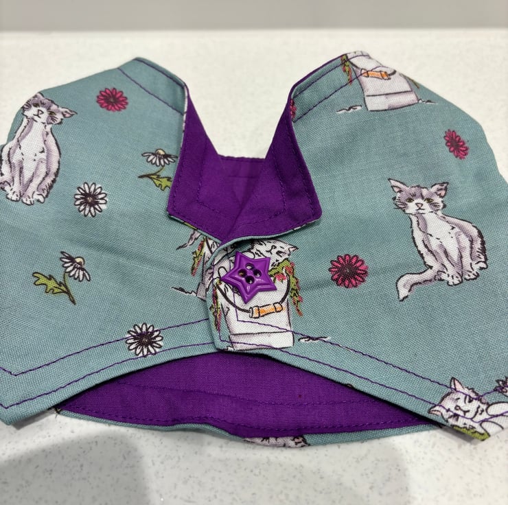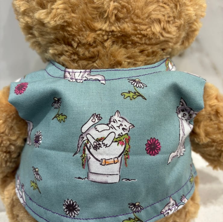 The cat themed waistcoats are popular, love the colour combination of this one.