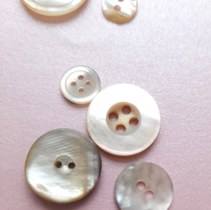 Vintage natural shell buttons in an assortment of sizes, pack of 50