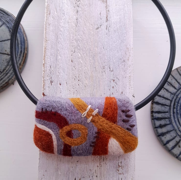 Made by Needle felting with a variety of needles over several hours with a few stitches and hand stitching on the back using manufactured felt backing.