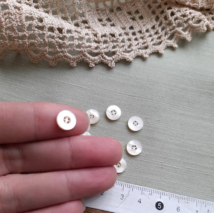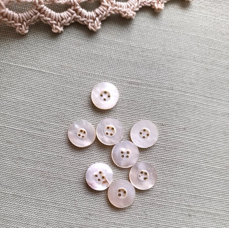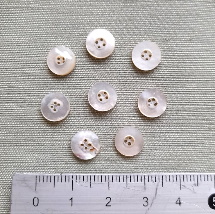 Vintage natural shell buttons, of the same design - all with 4 holes, and packed in a set of 8. I have had these in my collection for a number of years and therefore, they are very old - at a guess (and in comparison with some other buttons) I would say 1930's-1960's. Colours are generally off-white.