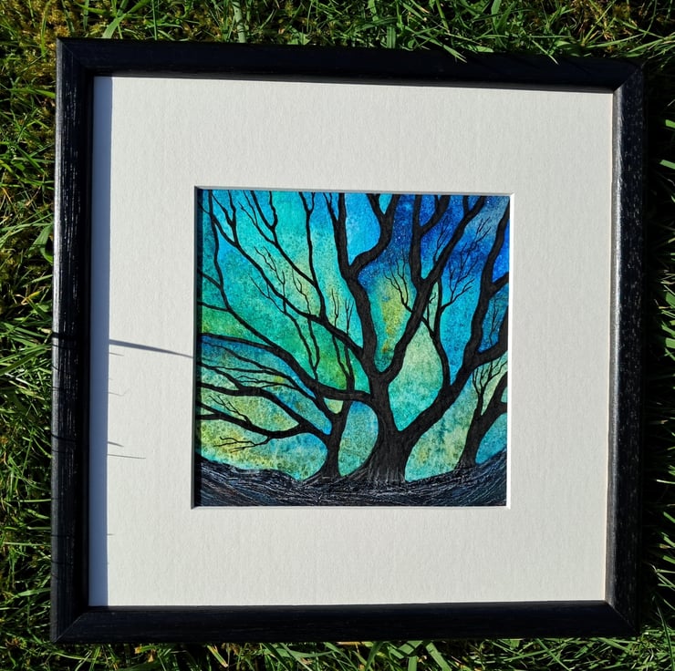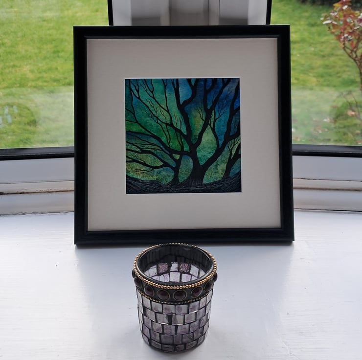 Green Calm is an atmospheric and expressive painting.. A wee artwork created with watercolours and ink.