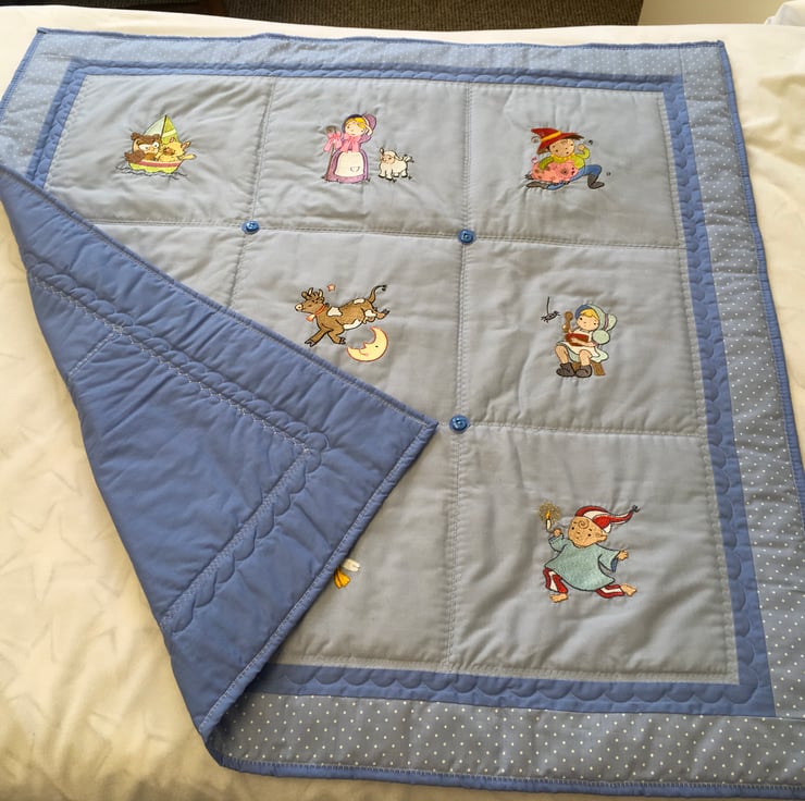 Nursery Rhyme Quilt. Eye-spy, Toddler bed cover, Play mat, Travel Cot, Camping.