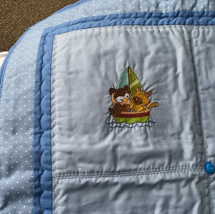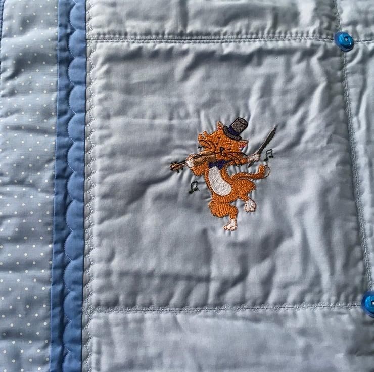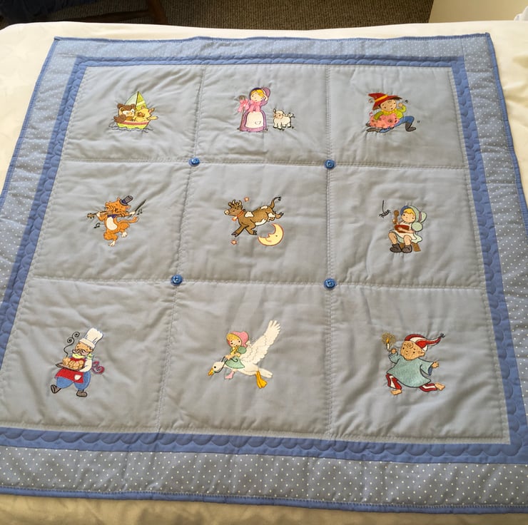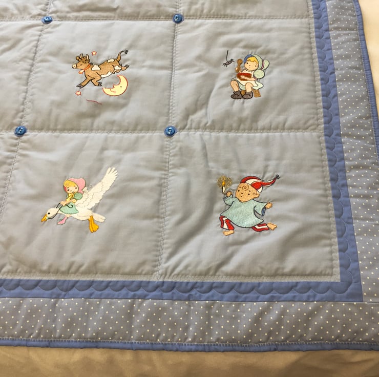 With embroidered pictures depicting nursery rhymes, this child- friendly quilt will be a talking point at bedtime or when taking a nap.