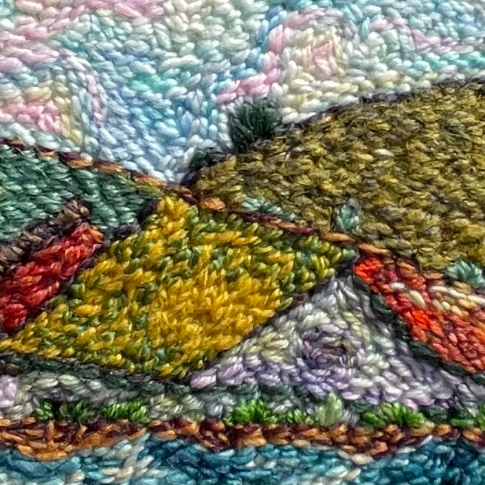 Hand embroidered by me using various wool yarns on to a wool felt background.