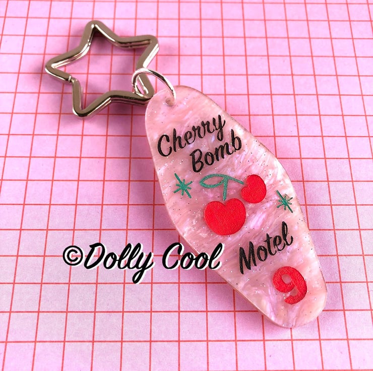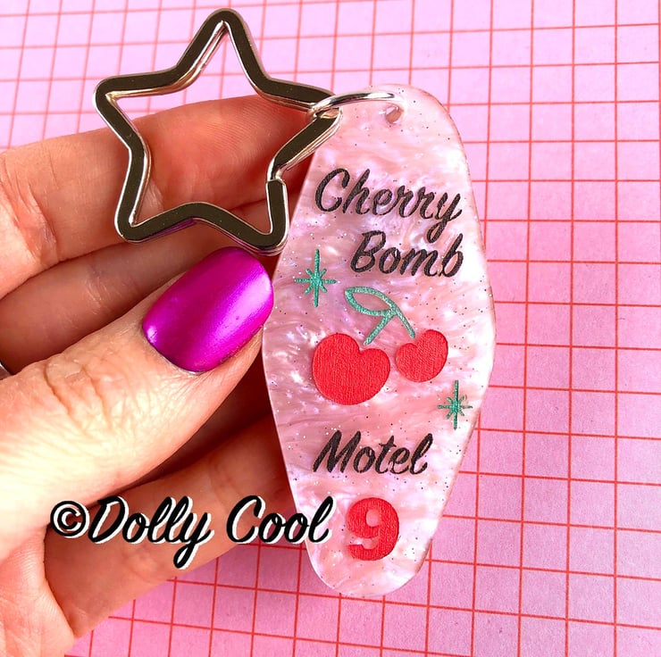 Cherry Bomb Retro Motel style Keyring by Dolly Cool - Rockabilly - 50s - Mid Century