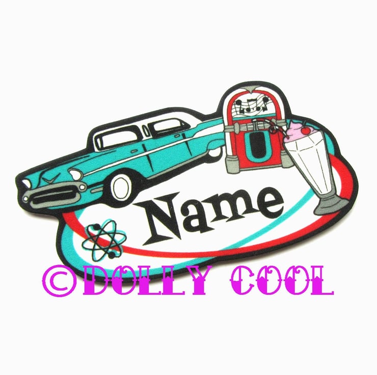 50s Diner Brooch Custom Personalized Name - Your choice of word - Hand Made by Dolly Cool Rockabilly 50s Pin Badge Tattoo
